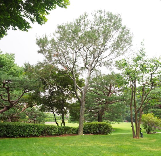 총 맞은 나무 수령은 100년이 넘어 보인다. 꽤 나이 들어 보이지만 백악산에서 이 정도면 청년이다. 백악산은 길 아닌 곳은 갈 수 없고, 허용된 길이라도 다닐 수 있는 시간은 정해져 있었다. 비무장지대와 다를 바 없다. 백악산 식생이 철조망의 엄호를 받았다면 청와대 풀과 나무들은 정원사의 극진한 보호를 받아왔다. 그래서 청와대는 창덕궁 후원 못잖은 명품 정원이다. 나무마다 사연도 많다.