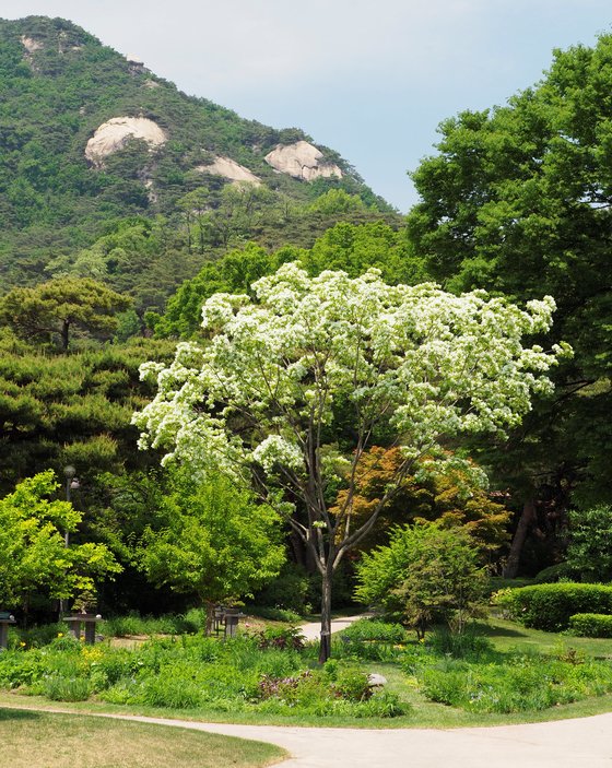 대정원 동편 소정원 한가운데 있는 이팝나무. 박근혜 전 대통령이 심었다.
