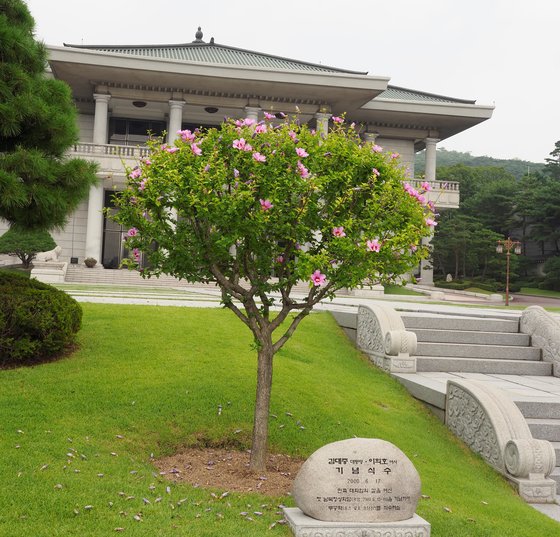 영빈관 앞에 있는 무궁화. 2000년 제1차 남북정상회담을 기념해 김대중 대통령이 심었다.